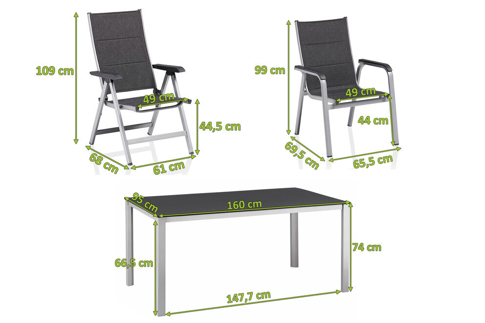 Mit den passenden Multipositions- und Stapelsesseln aus der Basic Plus Padded Serie kommen Sie so bequem durch den Sommer. Mittels Rasterschiene lässt sich der Multipo leicht in 4 verschiedene Positionen bringen - so wird der Komfort eines Liegestuhls direkt integriert. Das solide und formschöne Gestell beider Stuhlarten besteht aus edlem, silberfarbenem Aluminium. Das witterungsbeständige Material ist durch seine Flexibilität und seine zusätzliche Polsterung (padded) auch ohne Auflagen sehr bequem. Das formstabile, hellgraue Gewebe nimmt kein Wasser auf, ist atmungsaktiv, UV-Beständig und trocknet nach einem kurzen Schauer sehr schnell - insgesamt also der perfekte Begleiter in Ihrem Garten. Dank der leichten Materialien lassen sich die Stühle leicht handhaben - wenn diese nicht benötigt werden können Sie ihn zusammenkappen oder stapeln und somit platzsparend verstauen.