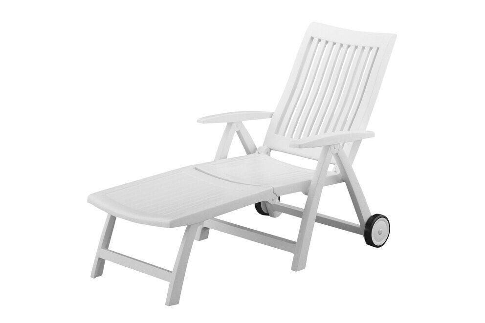 Mit der Gartenliege Roma bequem durch den Sommer. Mittels Rasterschiene lässt sich die Rückenlehne leicht in 4 verschiedene Positionen bringen. Das solide und formschöne Gestell besteht aus edlem, weißen Vollpolymer. Die Sitz-/Liegefläche und Rückenlehne sind ebenfalls aus Vollkunststoff gefertigt. Das leichte Material ist formstabil und trotzdem sehr bequem und zusätzlich UV- und sonnenölbeständig - insgesamt also der perfekte Begleiter in Ihrem Garten. Dank der leichten Materialien und der Rollen lässt sich die Liege leicht handhaben - wenn sie nicht benötigt wird können Sie sie unkompliziert umstellen.