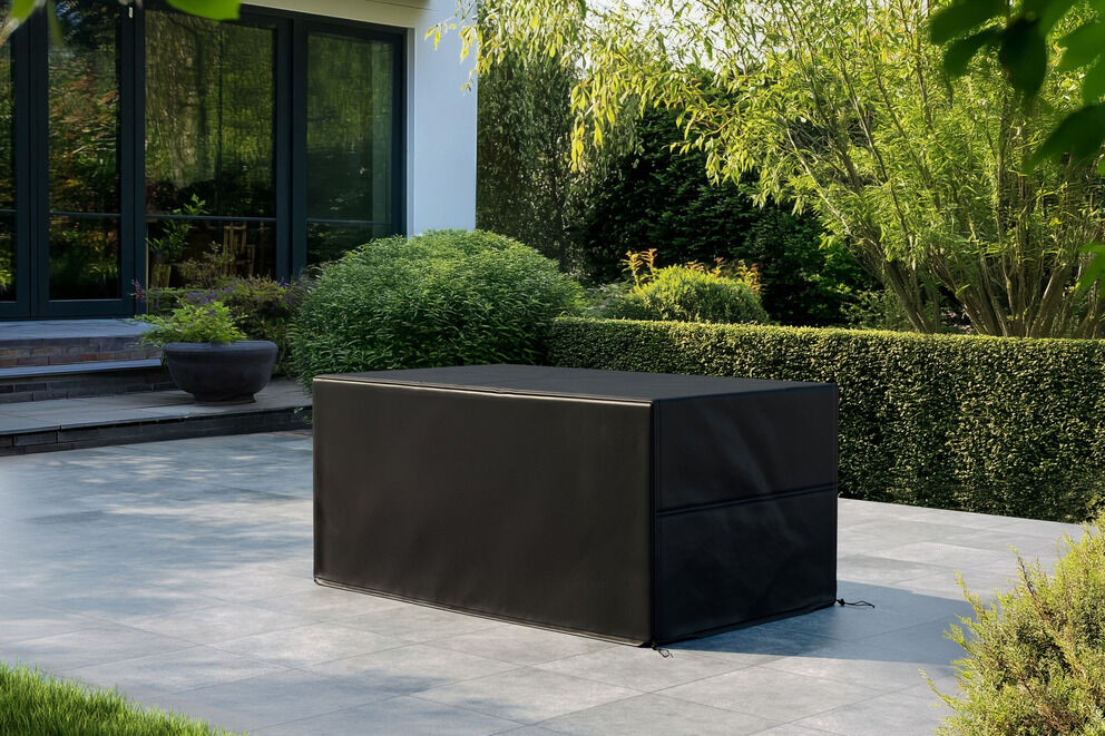 Die OUTFLEXX Abdeckhaube bietet Ihnen den idealen Schutz für Ihre Gartentische und verlängert die Lebensdauer Ihrer Möbel auf elegante Weise. Hergestellt aus hochwertigem Ripstop-Gewebe und 100% Polyester, schützt diese Haube Ihre Tische vor Wind, Wetter und UV-Strahlung und ist dabei leicht und atmungsaktiv. Das moderne schwarze Design fügt sich nahtlos in jede Gartenumgebung ein und sorgt dafür, dass Ihre Outdoor-Möbel stets gut geschützt sind und gleichzeitig ansprechend wirken.