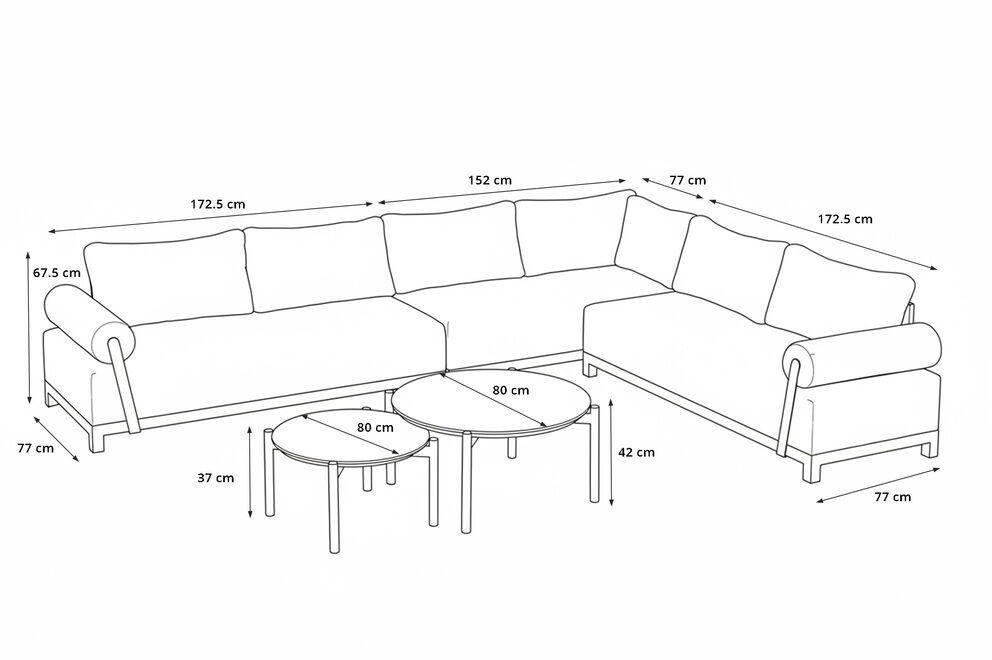 Das robuste Gestell aus pulverbeschichtetem Aluminium überzeugt durch seine hohe Stabilität, Witterungsbeständigkeit und Korrosionsfestigkeit. Dank der Pulverbeschichtung bleibt die Oberfläche dauerhaft geschützt und widersteht mühelos Sonne, Regen und Temperaturschwankungen. Die Lounge ist somit ideal für den ganzjährigen Einsatz im Freien geeignet. Die klaren Linien und das elegante Design machen die OUTFLEXX Altea zu einem echten Highlight in jedem Garten.