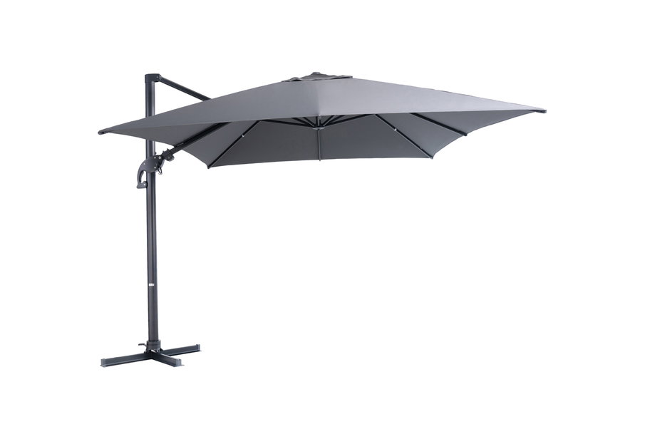 Die quadratische Form und das moderne, graue Design machen diesen Schirm zu einem optischen Highlight, das sich harmonisch in jede Gartengestaltung einfügt. Seine schmutzabweisenden und pflegeleichten Materialien erleichtern die Reinigung und sorgen dafür, dass der Schirm auch nach längerer Nutzung wie neu aussieht. Ob für ein gemütliches Frühstück im Freien oder als Schutz vor intensiver Mittagssonne – dieser Ampelschirm vereint Funktionalität und Ästhetik auf höchstem Niveau.