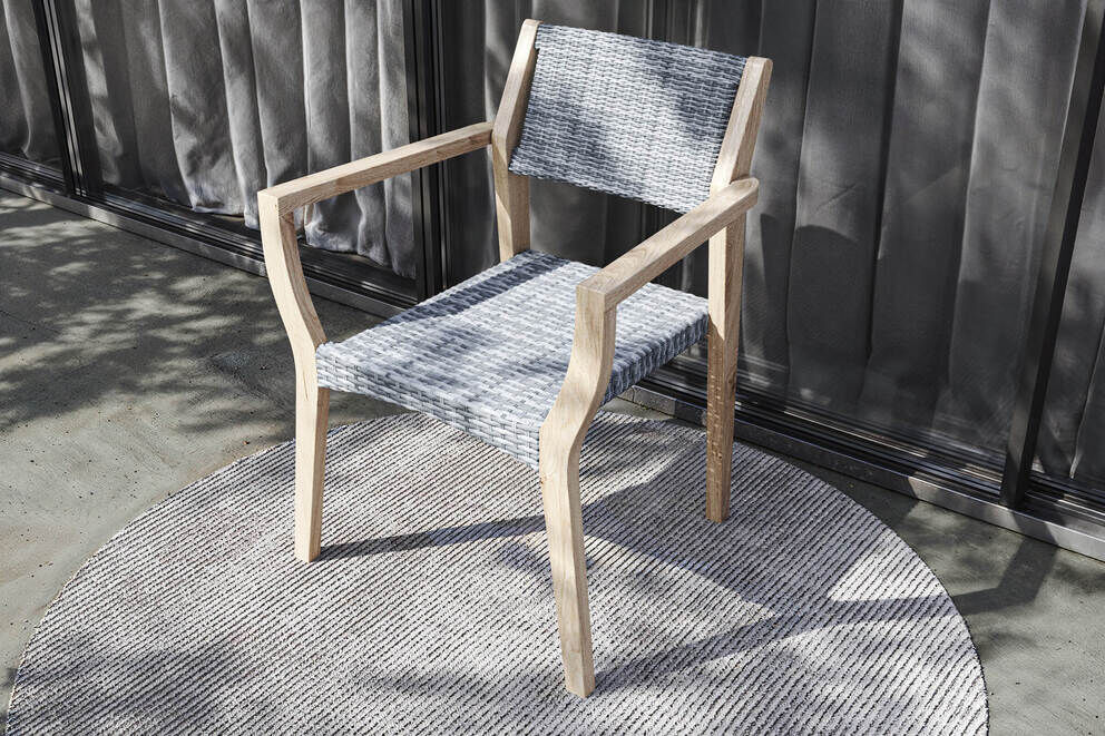 1x OUTFLEXX Armlehnensessel, natur/grau, Akazie/Geflecht, ca. 60 x 55 x 84 cm, stapelbar