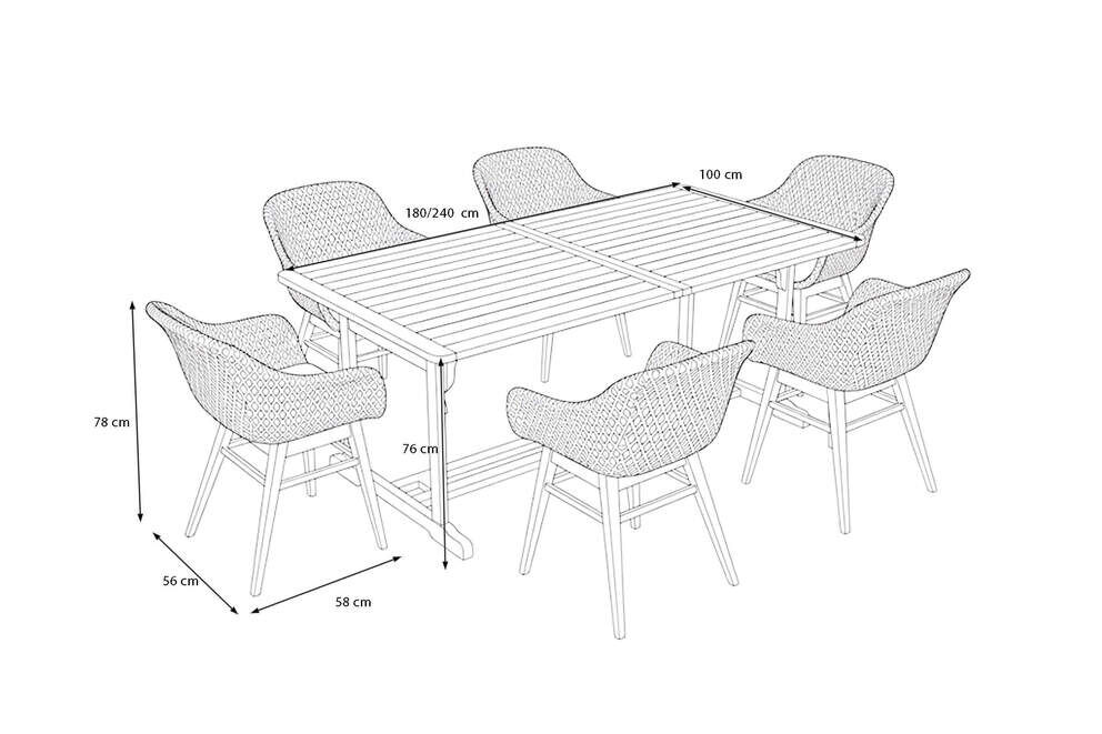 Erleben Sie mit der OUTFLEXX Bali Garten-Essgruppe stilvolle Momente im Freien – eine harmonische Kombination aus natürlichem Akazienholz, elegantem Polyrattan-Geflecht und hochwertigem Sitzkomfort. Dieses Set, bestehend aus einem großzügigen Ausziehtisch und sechs komfortablen Dining Sesseln, verbindet elegantes Design mit funktionaler Vielseitigkeit und schafft den perfekten Mittelpunkt für gemeinsame Mahlzeiten, gesellige Sommerabende oder entspannte Stunden im Garten, auf der Terrasse oder im Wintergarten.
