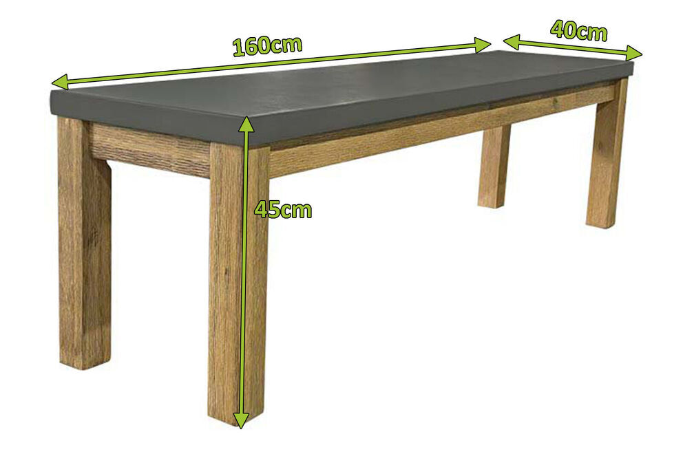 Genießen Sie das moderne und stilvolle Beton-Flair in Kombination mit schickem Akazienholz: mit Maßen von ca. 160 x 40 x 45 cm ist diese Bank passend zu vielen Tischen und fügt sich perfekt in Ihr Gartendesign ein. Hier wird jeder Brunch, jedes Kaffeetrinken und jedes gemeinsame Beisammensein zu einem Fest. 2-3 Personen finden auf dieser eleganten und zugleich schlichten Bank bequem Platz. Ergänzen Sie sie mit den passenden Möbeln aus der Serie.