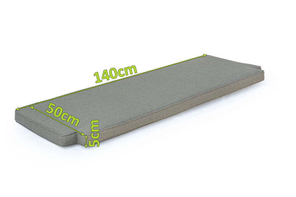 Dank des ca. 5 cm dicken Kissens erhalten Sie extra Sitzkomfort. Mit einer Größe von ca. 140 x 50 x 5 cm und seiner speziell angepassten Form ist es optimal für die OUTFLEXX® Gartenbank (Art.-Nr. 18309) geeignet. Der Bezug besteht aus hochwertigem Sunproof® Olefin in der Trendfarbe grau. Gewebt aus 100% spinngefärbtem Olefingarn bzw. Polypropylen ist das Material nicht nur besonders UV-beständig und farbecht, sondern trotzt auch Wind- und Wettereinflüssen. Durch die absolute Wetterfestigkeit kann das Sitzkissen ganzjährig verwendet werden und auch verschüttete Getränke machen dem schnelltrocknenden Stoff nichts aus. Das Gewebe ist atmungsaktiv, schmutzabweisend, schimmelresistent und weist außerdem antimikrobielle Eigenschaften auf. Olefin wird zudem umweltfreundlich hergestellt und ist recycelbar. Die Füllung des Kissens besteht aus hochwertigem Vlies-Schaumstoff und trocknet ebenfalls schnell. Aufgrund des praktischen Reißverschlusses können Sie den Bezug ganz leicht abnehmen und reinigen, so dass auch größere Beanspruchungen dem stylischen Sitzkissen nichts anhaben können. Sie werden von der Qualität begeistert sein und sich viele Jahre daran erfreuen.