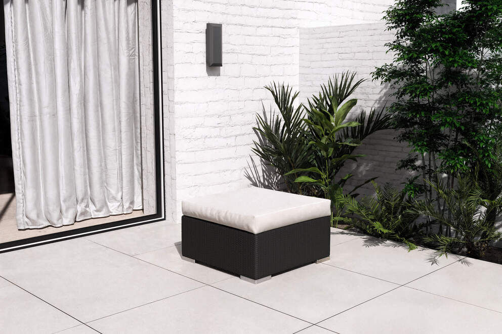 Ob als Bestandteil einer Gartenlounge oder als Balkonmöbel: Dieses Modulelement bietet Ihnen die beste Grundlage für Ihre individuelle Gartengestaltung. Der Polyrattan Gartenhocker ist absolut wetterfest und äußerst pflegeleicht. Extreme Temperaturen zwischen -60°C und +70°C können der Polyrattanfaser nichts anhaben. Der Hocker verfügt über edle Aluminiumfüße, die dank der Kunststoffnoppen Ihren Bodenbelag schonen und einen schönen Kontrast zur flachen Polyrattanfaser bilden. Je nach Bedarf nutzen Sie die Polsterauflage für einen weiteren Sitzplatz oder das Sicherheitsglas für eine weitere Abstellmöglichkeit. Einzelne Modulelemente haben zudem den praktischen Vorteil, dass Sie Ihre Gartenlounge bei Bedarf erweitern und immer wieder neu anordnen können.