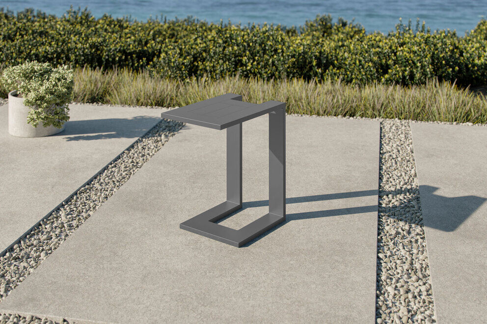 Erleben Sie die perfekte Kombination aus Funktionalität und Design mit dem hochwertigen Beistelltisch von OUTFLEXX. Dieser U-förmige Tisch ist der ideale Begleiter für Ihre gemütlichen Stunden im Garten, auf der Terrasse oder dem Balkon. Mit seiner modernen Optik in edlem Schwarz und seiner robusten Aluminiumkonstruktion bietet er nicht nur einen praktischen Nutzen, sondern auch ein ästhetisches Highlight für jeden Außenbereich.