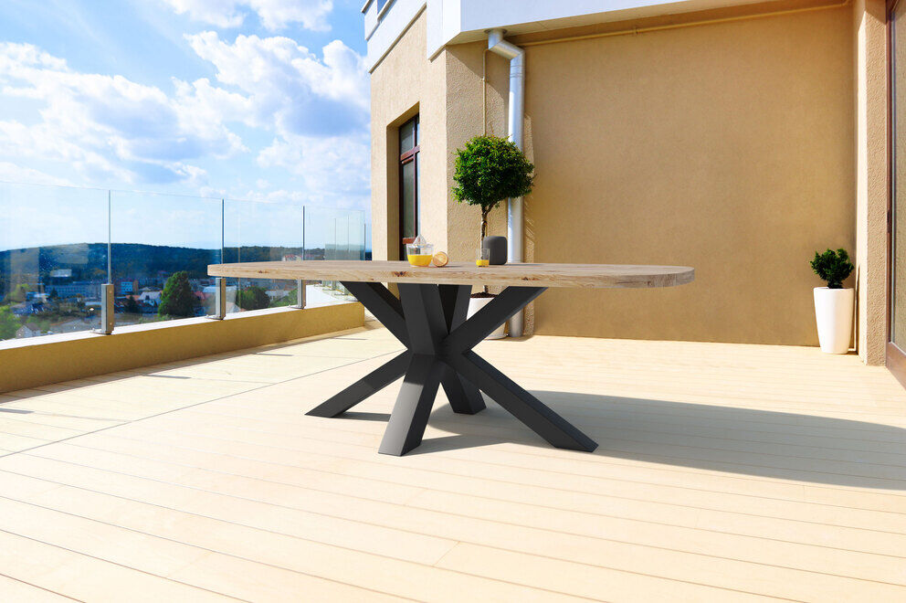 | ✔ | Individuelles Design Die wunderschöne Maserung macht jeden Tisch zu einem Unikat. Mit der ausgefallenen CrossLeg-Gestellform wird der Tisch zu einem Design-Highlight in Ihrem Garten. |