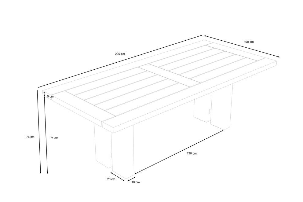 Laden Sie ein zum Fest: Mit Maßen von ca. 220 x 100 x 76 cm und einer Tischunterkantenhöhe von ca. 71 cm bietet der Esstisch reichlich Platz für 6-8 Personen, die beste Voraussetzung für Ihre nächste Feier im Garten. Das wiederverwertete Teakholz verleiht einen ganz besonderen Charme, jedes Möbelstück ist so einzigartig wie die Geschichte des verwendeten Holzes. Die rustikal gebürstete Oberfläche sorgt dafür, dass die natürliche Struktur des Holzes erhalten bleibt und die Maserung besonders gut zum Vorschein kommt. Das Zusammenspiel aus dieser rustikalen Oberfläche und dem im Landhausstil gefertigten Gestell, verleiht dem Tisch sein besonderes Aussehen und sorgt dafür, dass er sich zu nahezu jeder Garteneinrichtung harmonisch kombinieren lässt. Die Stärke der Tischplatte von ca. 5 cm und das extra dicke Doppelfuß-Gestell unterstreichen das rustikale Design zusätzlich.