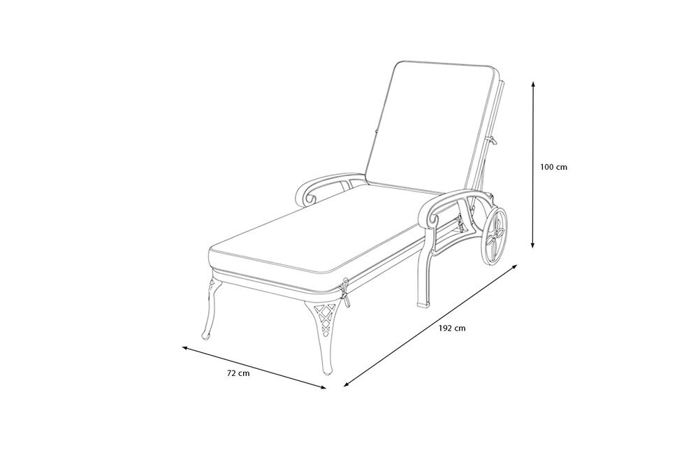 Das robuste Gestell aus pulverbeschichtetem Gussaluminium sorgt für eine langlebige, rostfreie und wetterbeständige Konstruktion. Durch die bronzefarbene Oberfläche mit feiner Struktur wirkt die Liege edel und hochwertig. Dank der Pulverbeschichtung bleibt das Material auch bei intensiver Sonneneinstrahlung und wechselnden Witterungsbedingungen beständig und pflegeleicht.