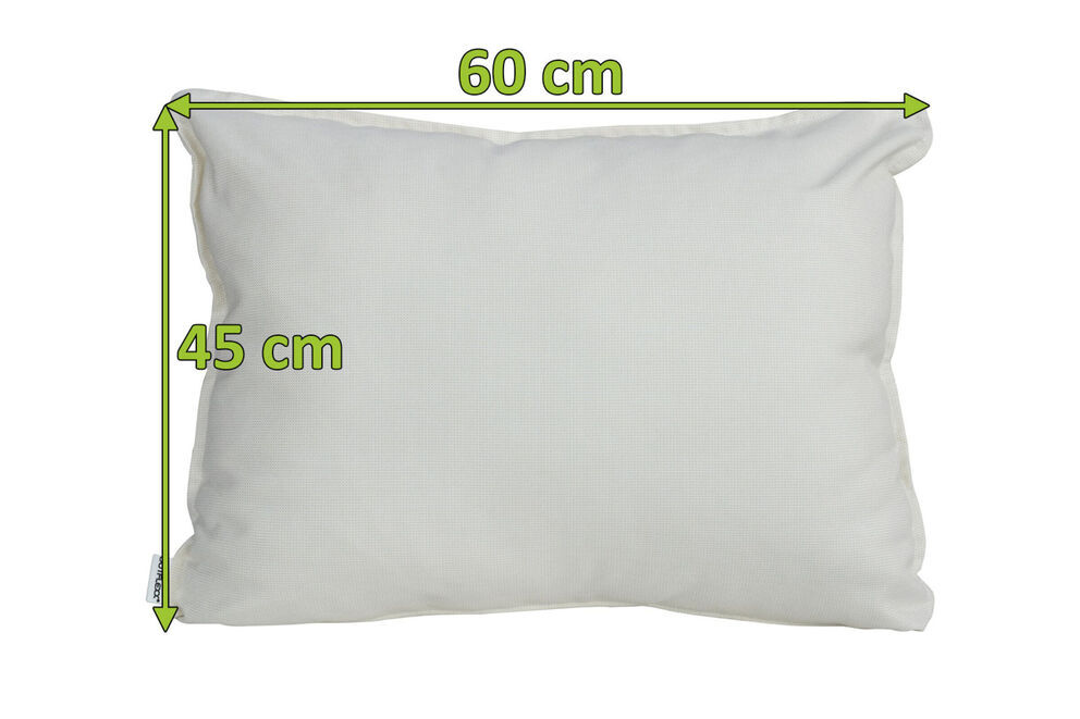 Es kann mit seinen Maßen von ca. 60 x 45 cm entweder nur zu Dekozwecken genutzt werden oder aber um den Sitzkomfort Ihrer Sunbrella Möbel noch mehr zu steigern. Die Kissendicke beträgt ca. 10 cm und das Kissen wiegt ca. 0,7 kg. Das Obermaterial dieses Kissens besteht aus hochwertigem Sunbrella Textilen (260g/m²). Das Basismaterial von Sunbrella ist spinndüsengefärbtes Acryl, bei dem bereits bei der Herstellung Farbpigmente in die Faser eingebettet werden. Dadurch ist das Gewebe UV-beständig und trotzt Wind- und Wettereinflüssen. Durch ihre absolute Wetterfestigkeit können Sie die Loungemöbel ganzjährig ohne Schutz auf Ihrer Terrasse stehen lassen - und auch verschüttete Getränke oder dreckige Schuhe machen dem Stoff nichts aus. Auch in puncto Farbechtheit unterscheidet sich Sunbrella vom klassischen Textilgewebe, die Farbe sieht auch nach Jahren in Gebrauch noch aus neuwertig. Außerdem weist der Stoff atmungsaktive, schmutzabweisende und schimmelbeständige Eigenschaften auf, weshalb er sich hervorragend für den Innen- und Außenbereich eignet. Das Innere des Polsters besteht aus besonderem Schaumstoff - dem 'Quick Dry Foam'. Dieses Material verfügt über eine offenporige Zellstruktur, welche mit der Funktion einer Drainage vergleichbar ist. Eingedrungenes Wasser kann ungehindert austreten und unangenehme Gerüche sowie Schimmelbildung werden vermieden. Je nach Beanspruchung und Umwelteinflüssen empfehlen wir, den Sunbrella-Stoff einmal im Monat mit einem Wasserschlauch oder einer sanften Bürste von oberflächlichen Verschmutzungen zu befreien. Pflege- und Reinigungsmittel mit denen Sie den Sunbrella-Stoff vor Dreck schützen können finden Sie im Zubehör. Das Kissen besitzt einen Reißverschluss, so kann der Bezug ganz leicht abgenommen werden und man kann das Kissen bei 40 °C waschen.