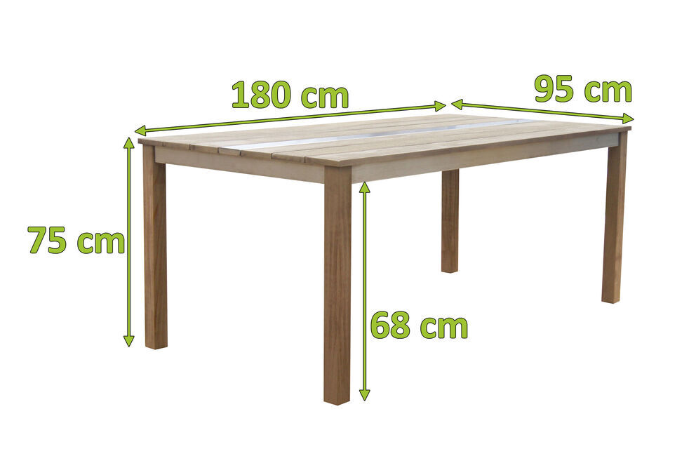1x OUTFLEXX Dining Tisch, natur, Teak, ca. 180x95 cm, Tischbeine aus Teak
