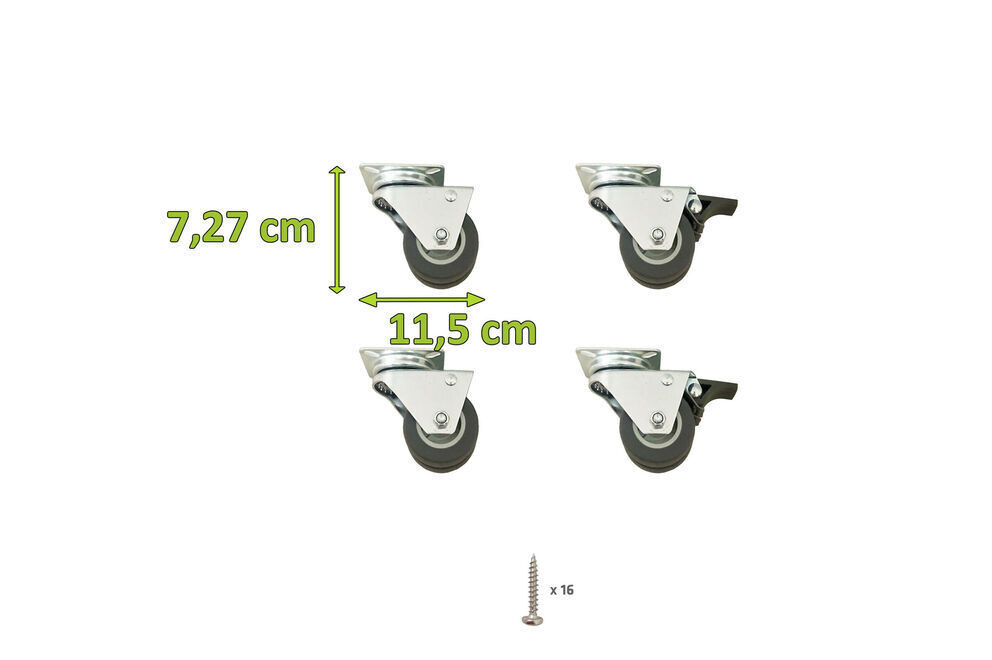 Die Doppellrollen werden im 4er Set geliefert und können mit dem beigelegten Montageset kinderleicht an Ihrem Strandkorb angebracht werden. So schützen Sie den Boden vor unschönen Kratzern, wenn Sie den Korb verstellen möchten, außerdem erleichtern die Rollen das Verstellen natürlich erheblich. Die maximale Belastbarkeit pro Doppelrolle liegt bei ca. 100 kg. Die Doppelrollen passen perfekt zu den Strandkörben der Marke OUTFLEXX.