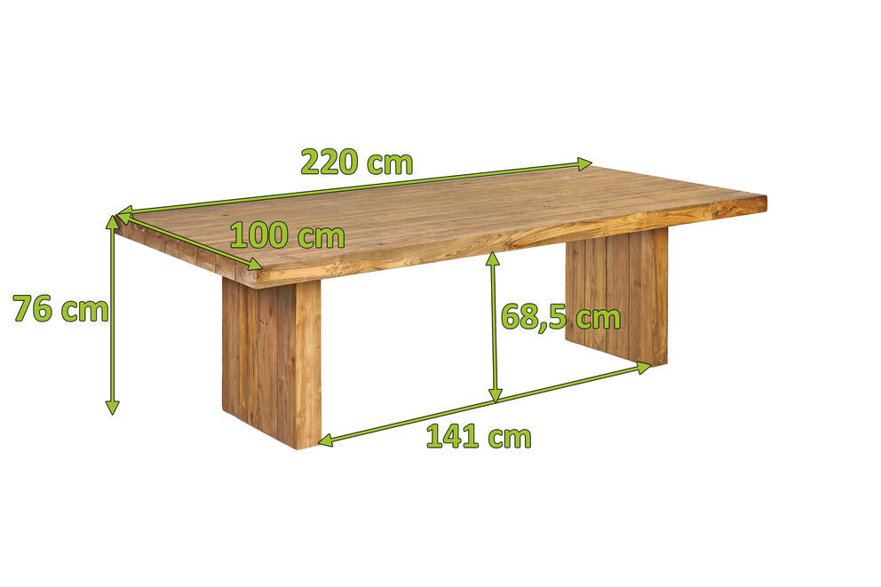 1x OUTFLEXX® Encino Diningtisch, natur, recyceltes FSC-Teakholz, ca. 220 x 100 x 76 cm