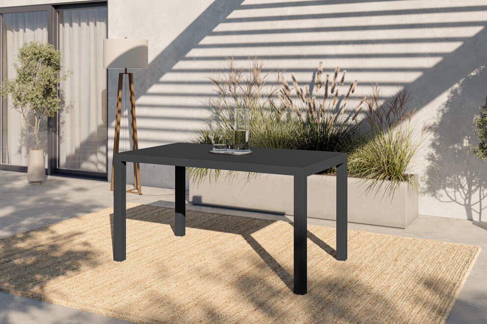 Mit seiner matt anthraziten Oberfläche fügt sich der Tisch nahtlos in jedes Gartenambiente ein und bietet eine moderne, stilvolle Optik. |
