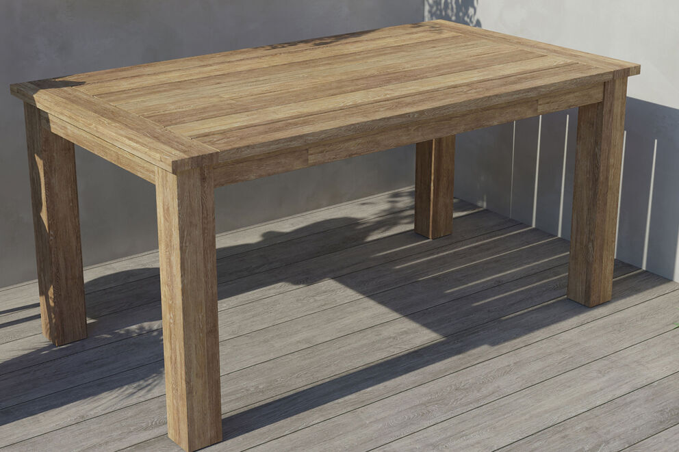 Diese Old-Teak-Gartenmöbel werden aus recycelten Teakhölzern hergestellt.