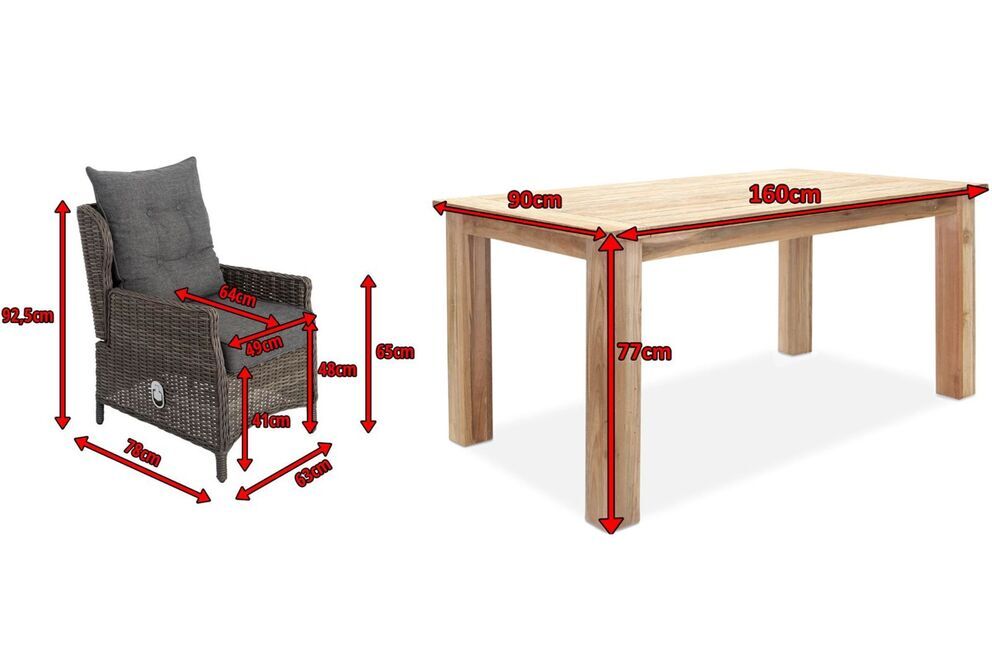 Die gemütlichen Diningsessel sind wahrlich Verwandlungskünstler. Hier können Sie gemütlich mit einem guten Buch in der Sonne liegen oder aber auch ganz bequem Ihr Mittag- oder Abendessen zu sich nehmen. Hierzu brauchen Sie einfach nur Platz zu nehmen und sich Ihren Lieblingssessel problemlos in eine bequeme Liege- oder Sitzposition einstellen. Dies gelingt kinderleicht dank der integrierten Gasdruckfeder - die Rückenlehne kann mit einem kleinen Hebel an der Seite stufenlos verstellt werden. Die Sessel haben ein Gesamtmaß von ca. 78 x 63 x 92,5 cm. Die Sitzfläche ist ca. 64 cm tief, die Sitzhöhe mit Kissen liegt bei ca. 51 cm. Die Armlehnen mit einer Höhe von ca. 65 cm sorgen bei diesem Sessel für besonderen Komfort.