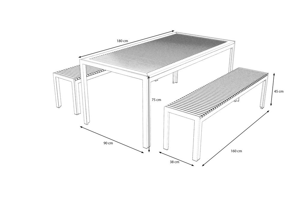 Jede Bank ist für bis zu ca. 200 kg ausgelegt und bietet Platz für bis zu drei Personen. Damit ist die Essgruppe ideal geeignet für Familienfeste, Grillabende oder gesellige Runden mit Freunden – zuverlässig, stabil und sicher. |