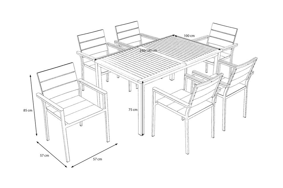 Die sechs stapelbaren Sessel sind nicht nur komfortabel, sondern auch praktisch. Mit Maßen von ca. 57 x 57 x 85 cm bieten sie eine angenehme Sitzhöhe von ca. 44,5 cm und bequeme Armlehnen in ca. 65 cm Höhe. Die Sitz- und Rückenflächen aus Teakholz passen optisch perfekt zum Tisch und bieten einen natürlichen Sitzkomfort. Das Edelstahlgestell garantiert Stabilität und macht die Stühle gleichzeitig leicht zu handhaben. Da sie stapelbar sind, können sie platzsparend verstaut werden, wenn sie nicht benötigt werden.