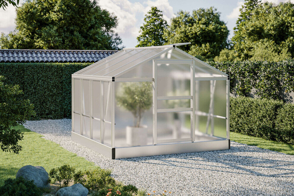 Für eine optimale Nutzung sorgt das clevere Design mit einer großzügigen Türöffnung, die Ihnen ein komfortables Hineingehen und Arbeiten im Innenraum ermöglicht. Das elegante Silver-Finish fügt sich harmonisch in jede Gartenlandschaft ein und verleiht Ihrem Außenbereich eine stilvolle Note. Ob zur Anzucht von Pflanzen, zum Schutz vor Schädlingen oder einfach als wettergeschützter Ort für empfindliche Gewächse – dieses Gewächshaus erfüllt alle Anforderungen.