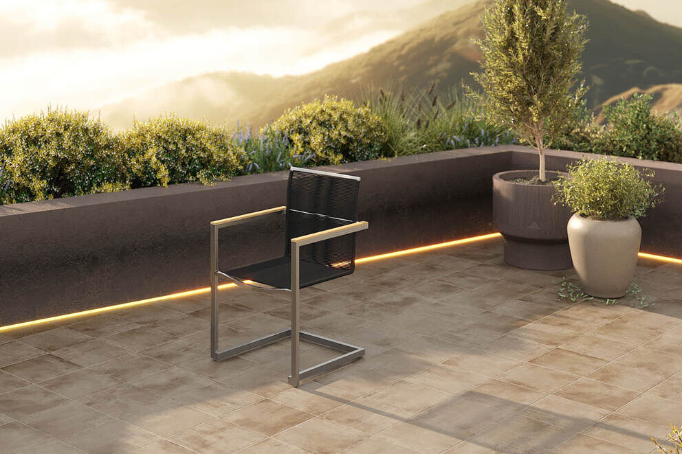 Der zeitlose und elegante Freischwinger von OUTFLEXX kann mühelos mit anderen Edelstahlmöbeln kombiniert werden und passt dank des schlichten Designs in nahezu jede Umgebung.