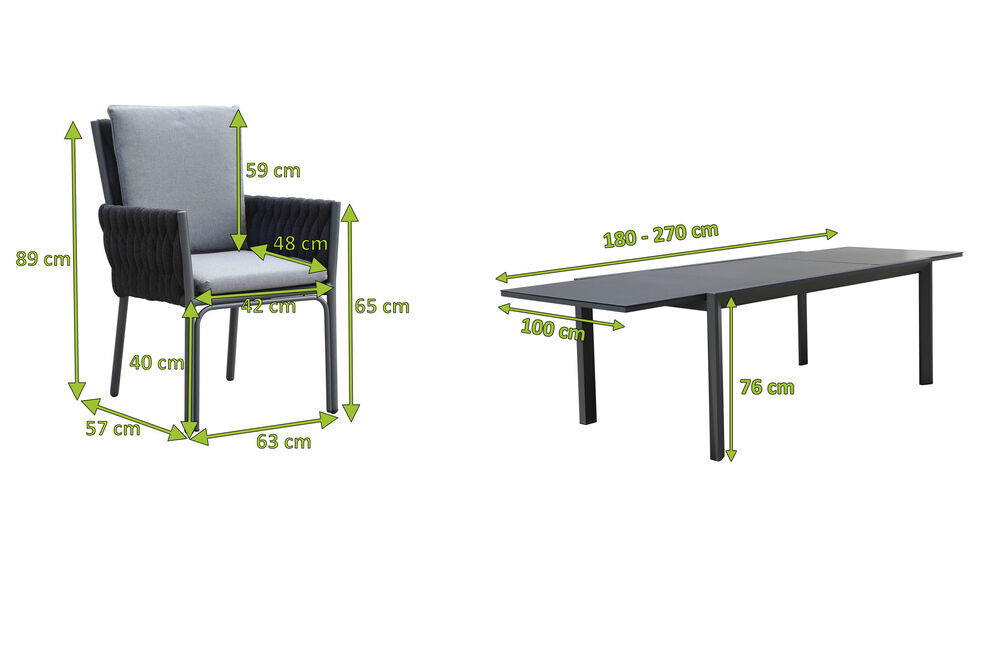 Der Gartentisch von OUTFLEXX® bietet Ihnen mit einer Länge von ca. 180 cm und einer Breite von ca. 100 cm genügend Platz, um reichlich bestückt zu werden. Zusätzlich kann dieser Tisch noch auf eine Länge von ca. 270 cm ausgezogen werden. Mit seiner Höhe von ca. 76 cm besitzt dieser Tisch eine ideale Wohlfühlhöhe. Das hochwertige Aluminiumgestell wurde pulverbeschichtet und kommt in einem eleganten Anthrazit daher. Aluminium eignet sich dank zahlreicher positiver Eigenschaften ideal für die Herstellung von Outdoor-Möbeln. Die Pulverbeschichtung sorgt für längere Haltbarkeit und Witterungsbeständigkeit. Sie können den Esstisch unbesorgt das ganze Jahr im Freien stehen lassen. Durch die Pulverbeschichtung wird das Material stoß-, schlag- und kratzfest.