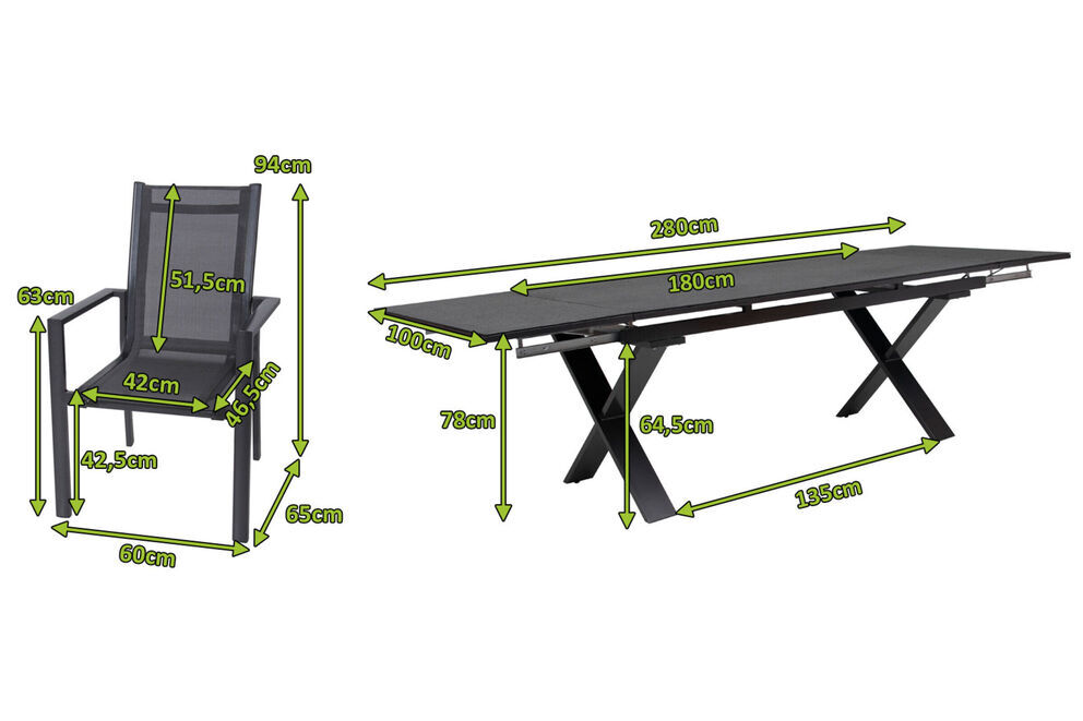 1x OUTFLEXX® Ausziehtisch in anthrazit/schwarz, ca. 180/280 x 100 x 78 cm