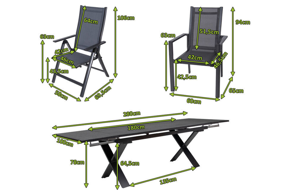 1x OUTFLEXX® Ausziehtisch in anthrazit/schwarz, ca. 180/280 x 100 x 78 cm