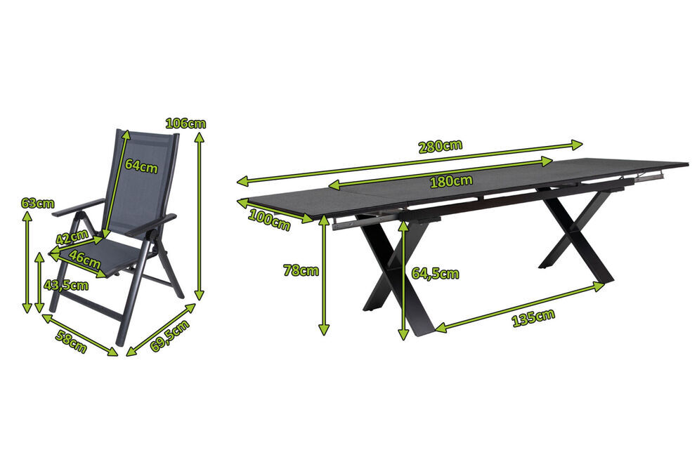 1x OUTFLEXX® Ausziehtisch in anthrazit/schwarz, ca. 180/280 x 100 x 78 cm