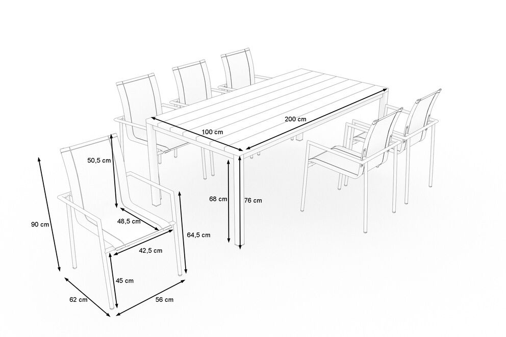 Diese Essgruppe ist ideal für Familienessen, Grillabende oder einfach entspannte Stunden im Freien. Mit ihrem modernen und dennoch zeitlosen Design fügt sie sich harmonisch in jede Garten- oder Terrasseneinrichtung ein. Die klaren Linien und die hochwertige Verarbeitung machen diese Garten-Essgruppe zu einem wahren Blickfang in Ihrem Außenbereich.