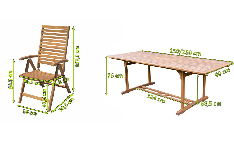 Das hochwertige Akazienholz für die Outflexx Esstischgarnitur hält nicht nur den strengen FSC-Zertifizierungsrichtlinien stand, sondern zeichnet sich außerdem durch seine extrem gute Witterungsbeständigkeit aus. Zudem besitzt Akazienholz eine besonders hohe Härte und Festigkeit - selbst Eichenholz kann da nicht mehr mithalten! Aufgrund der Vielzahl an positiven Eigenschaften ist die Outflexx Sitzgruppe perfekt für den Einsatz im Außenbereich geeignet. Das Akazienholz wurde zum Schutz vor Austrocknung und Witterungseinflüssen geölt. Um einen dauerhaften Schutz vor Verfall zu gewährleisten und zusätzlich die schöne Farbe der Holzmaserung zu erhalten, empfehlen wir Ihnen, die Holzoberfläche regelmäßig mit entsprechenden Pflegemitteln zu behandeln. Dafür ist spezielles Holzöl und Hartwachs bestens geeignet - mit diesem einfachen Trick werden Sie viele Jahre Freude an dem Outflexx Set haben. Dabei ist zu beachten, dass das Holz durch regelmäßiges ölen nachdunkeln kann.
