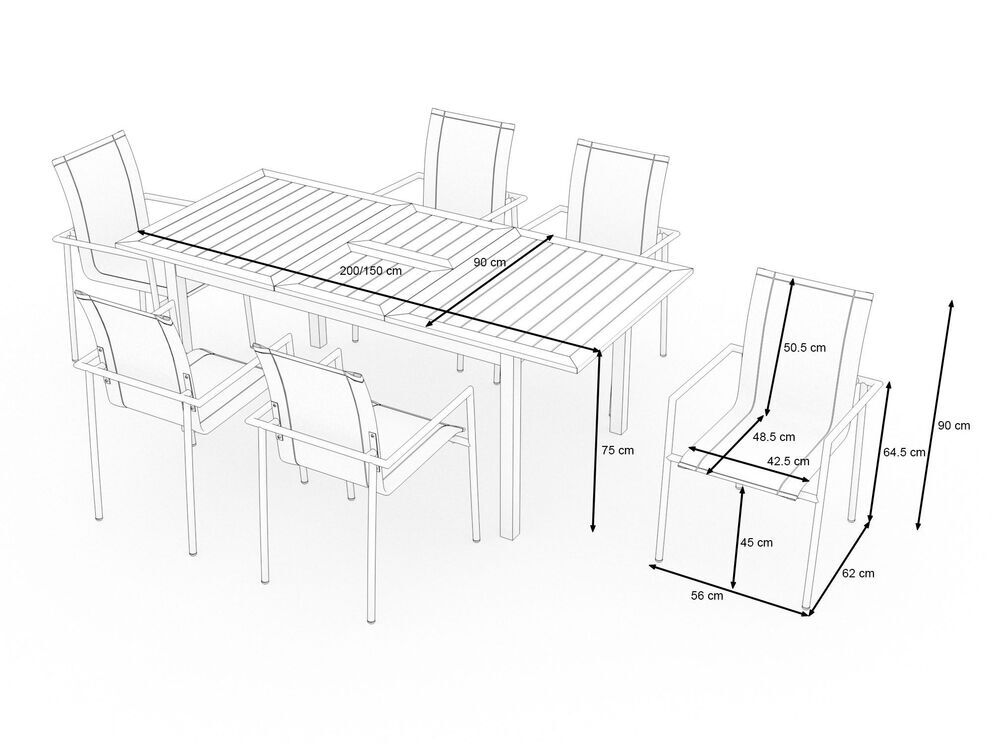 6x OUTFLEXX Diningsessel, anthrazit/grau, Edelstahl/Textilene, ca. 56x62x90cm, Teak