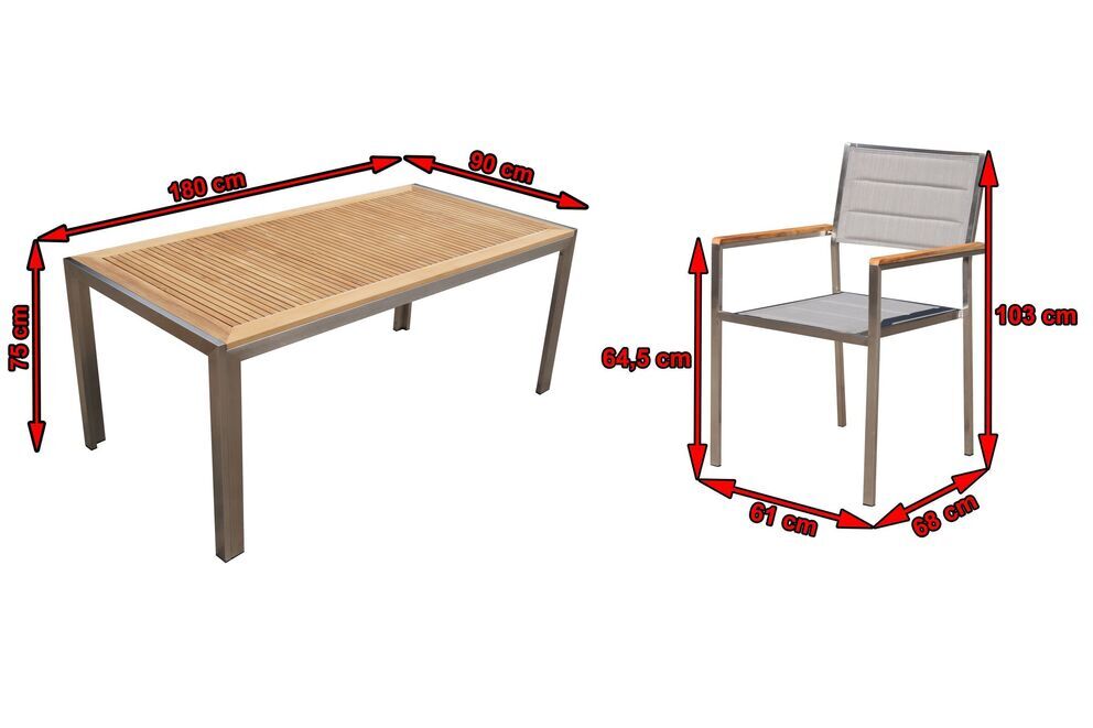 Das verwendete Teakholz ist FSC-zertifiziert und stammt damit aus verantwortungsvollen Quellen. So können Sie sich guten Gewissens zurücklehnen und sich so richtig entspannen. Teakholz und Edelstahl sind besonders witterungsbeständig und halten sowohl Frost und Hitze als auch Feuchtigkeit und Regen aus. Teakholz hat aufgrund des hohen Anteils an holzeigenen Ölen einen natürlichen Schutz gegen Pilze und Schädlinge. So beschränkt sich die Pflege Ihrer neuen Gartenmöbel auf ein Minimum und Sie können Ihre Zeit im Garten mit angenehmen Tätigkeiten verbringen.