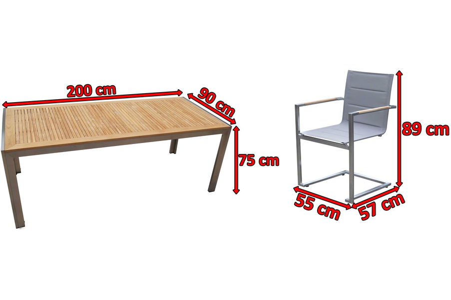 Teakholz und Edelstahl sind besonders witterungsbeständig und halten sowohl Frost und Hitze als auch Feuchtigkeit und Regen aus. Teakholz hat aufgrund des hohen Anteils an holzeigenen Ölen einen natürlichen Schutz gegen Pilze und Schädlinge. So beschränkt sich die Pflege Ihrer neuen Gartenmöbel auf ein Minimum und Sie können Ihre Zeit im Garten mit angenehmen Tätigkeiten verbringen.