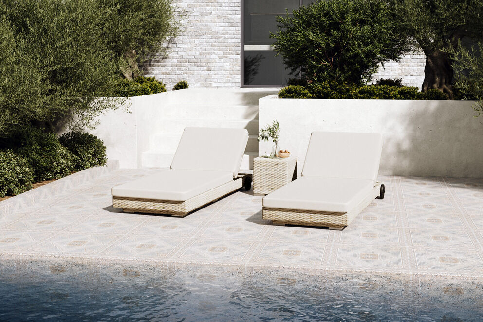 Die beiden OUTFLEXX Einzelliegen in edlem dessert-beige laden zum Relaxen ein. Sie sind ca. 200 x 70 cm groß und mit bequemen Kissen ausgestattet, die für maximalen Komfort sorgen. Die Bezüge der Kissen sind abnehmbar und waschbar, was die Pflege besonders einfach macht. Zudem lassen sich die Rückenlehnen horizontal verstellen, sodass Sie stets Ihre bevorzugte Liegeposition einstellen können.