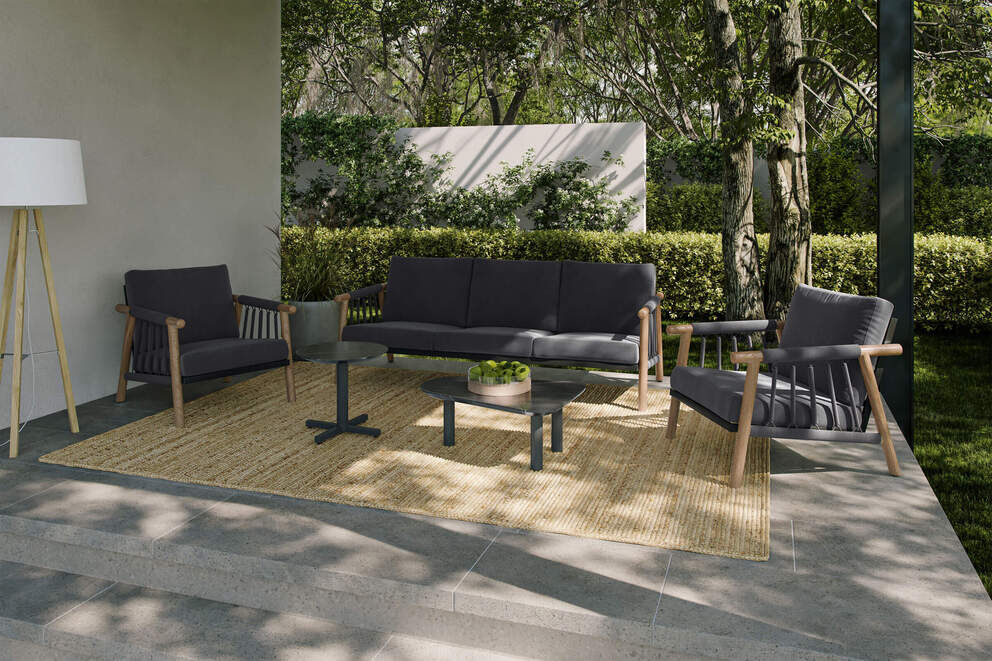 Leicht zu reinigende Oberflächen und wetterfeste Materialien machen die Pflege dieses Lounge-Sets besonders einfach und unkompliziert. |