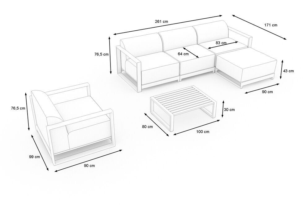 Die Lounge überzeugt nicht nur durch ihr elegantes, anthrazites Design, sondern auch durch die Verwendung robuster und wetterfester Materialien. Das Gestell aus Aluminium sorgt für eine hohe Stabilität und ist gleichzeitig leicht und rostfrei. Die Sitzflächen und Rückenlehnen sind mit hochwertigem Polyester bezogen, das nicht nur langlebig, sondern auch pflegeleicht ist. So bleibt Ihre Gartenlounge über lange Zeit hinweg wie neu – ganz ohne großen Aufwand.
