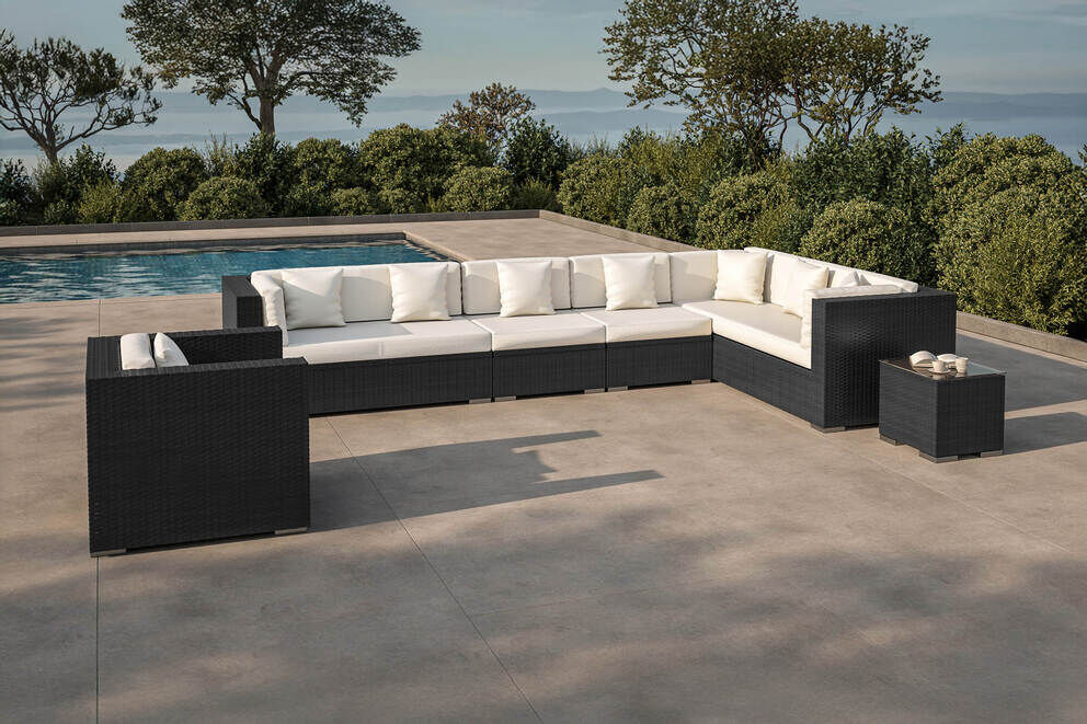 Viele Sitzplätze, ein schickes und modernes Design sowie die Langlebigkeit machen diese Loungegruppe zur optimalen Garten- oder Terrassenausstattung.