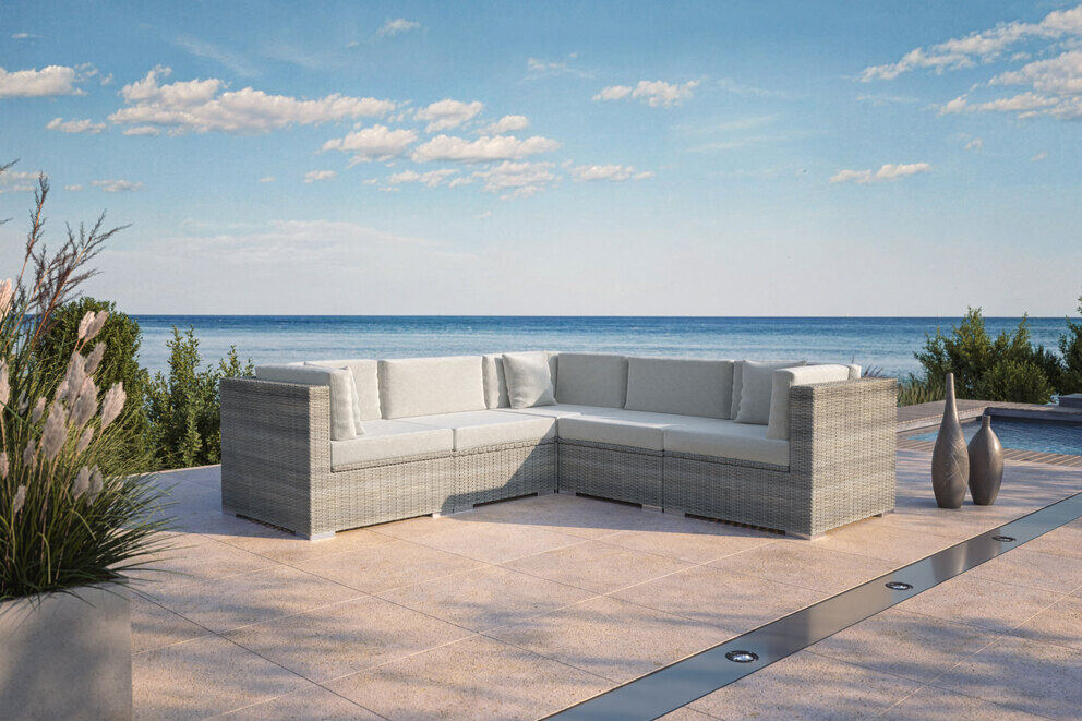 Dank der modularen Bauweise können Sie das Set individuell anpassen und je nach Bedarf umstellen. Ob als klassische Lounge, großzügige Sitzecke oder einzelne Sitzmöglichkeiten – dieses Set passt sich perfekt an Ihre Bedürfnisse an. Die Eckelemente lassen sich vielseitig kombinieren und bieten zahlreiche Gestaltungsmöglichkeiten für Ihre Terrasse oder Ihren Garten.