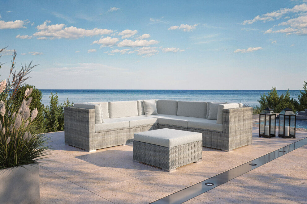 Die modularen Elemente lassen sich individuell anpassen und kombinieren. So können Sie Ihre Sitzgruppe nach Ihren Bedürfnissen gestalten – sei es für gemütliche Stunden allein oder gesellige Runden mit Freunden und Familie. |