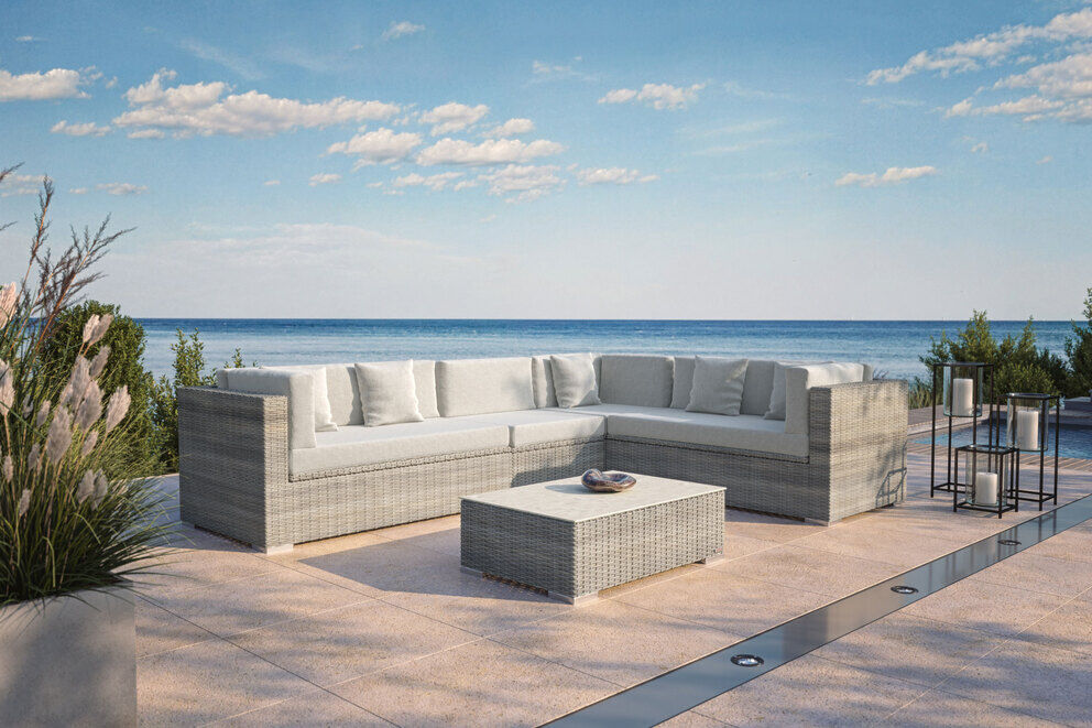 Bringen Sie luxuriösen Komfort in Ihren Außenbereich mit dem OUTFLEXX Polyrattan Loungeset – stilvoll, langlebig und wetterbeständig. Bestellen Sie jetzt und genießen Sie entspannte Stunden in Ihrem Garten!