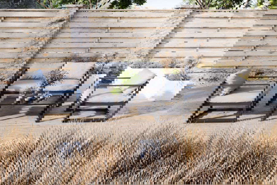 Das Gestell aus rostfreiem Aluminium und die wetterfesten Polyesterbezüge garantieren Langlebigkeit und Widerstandsfähigkeit – ideal für den Einsatz im Freien. |