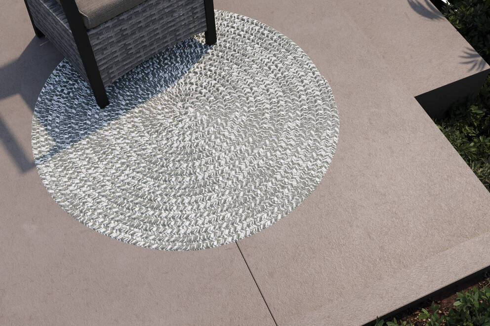 Der runde OUTFLEXX Harmony Outdoor Teppich in der eleganten Farbnuance Aluminium-White verleiht jedem Außen- oder Innenbereich eine moderne, behagliche Atmosphäre. Mit seinem geflochtenen Design und der harmonischen Farbkombination aus hellen Grau- und Weißtönen fügt sich dieser Teppich nahtlos in unterschiedlichste Einrichtungsstile ein – von modern über skandinavisch bis hin zu mediterran.