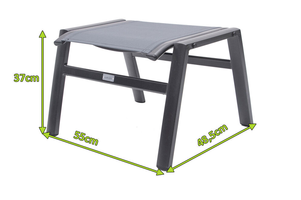 Gönnen Sie auch Ihren Beinen ein wenig Urlaub. Erholen Sie sich nach einem langen Tag im heimischen Garten und schalten Sie einfach mal ab. Der Hocker ist nicht nur leicht, sondern auch stabil und unheimlich stark - Sie erhalten in ihm auch einen weiteren Sitzplatz, der bis zu ca. 120 kg belastet werden kann. Er ist der ideale Begleiter in Ihrem Garten und lädt Sie und Ihre Gäste jederzeit zum Verweilen ein. Für das schicke anthrazitfarbene Gestell kommt korrosionsbeständiges Aluminium mit Pulverbeschichtung zum Einsatz. Bespannt wird das solide Gestell mit Textilene im passenden Grauton. Es sorgt für ein herrlich luftiges Sitzgefühl, das seinesgleichen sucht. Die Sitzfläche ist darüber hinaus unglaublich verliert nie ihre Form. Der Hocker hat ein Gesamtmaß von ca. 48,5 x 55 x 37 cm. Dank der hochwertigen Materialien und erstklassigen Verarbeitung ist das ca. 2,1 kg leichte Federgewicht somit auch ganz nach Bedarf an Ihren Lieblingsplätzen aufstellbar. Mit Hilfe der Stapelfunktion lässt sich der Hocker bis zum nächsten Einsatz im Gartenhäuschen oder der Garage verstauen.