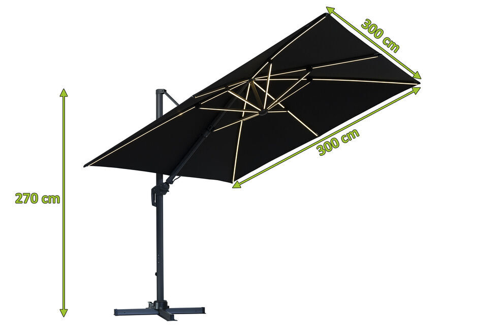 1x OUTFLEXX LED Ampelschirm, schwarz, Alu/Polyester, ca. 300x300x270 cm