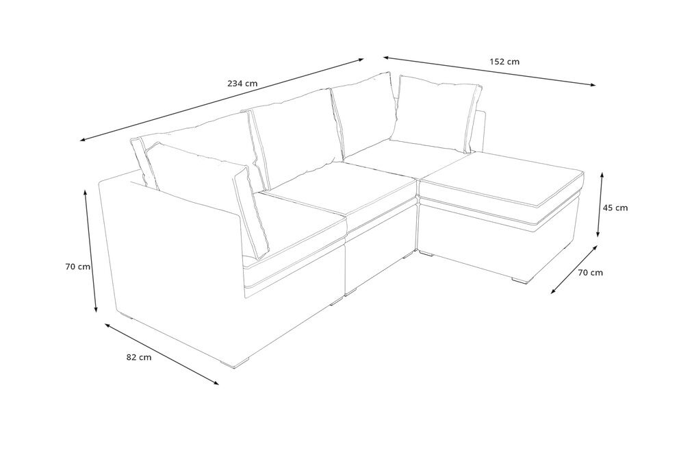 Dieses Loungemodul bietet Ihnen dank seiner ca. 10 cm dicken und bequemen Polsterung besten Komfort, um stundenlang relaxen zu können. Die Polster werden durch farblich perfekt abgestimmte, wasserabweisende Bezüge aus 100% Olefin (200g/m²) geschützt. Die synthetische Faser Olefin wird für ihre Hitzebeständigkeit und optimalen Trage- und Pflegeeigenschaften geschätzt. Sollten Sie einmal Falten in Ihren Polstern haben, werden diese bei Wärme von alleine verschwinden, sodass die Bezüge komplett bügelfrei sind. Textilien aus Olefin sind bequem, hautkühlend, waschbar und bügelfrei. Sie eignen sich perfekt für den Einsatz im Freien, was nicht zuletzt an ihrer wasserabweisenden und atmungsaktiven Materialzusammensetzung liegt. Besonderes Extra - Die Sitzflächen lassen sich hochklappen und der darunter liegende Stauraum bietet Platz für alle Polster. Dieser Stauraum ist mit einer wasserabweisenden Kissentasche ausgestattet, die mittels Reißverschluss geschlossen wird. So lassen sich die Polster sicher und platzsparend verstauen. Die Sitzflächen können jeweils in 5 verschiedenen Stufen festgestellt werden, so entsteht auf Ihrer Lounge aus Modulelementen eine gemütliche Liegefläche, perfekt für einen Tag in der Sonne, zum Beispiel mit einem guten Buch.