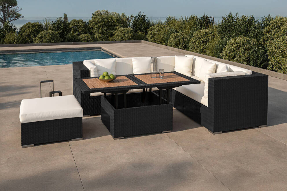 Viele Sitzplätze, ein schickes und modernes Design sowie die Langlebigkeit machen diese Loungegruppe zur optimalen Garten- oder Terrassenausstattung.