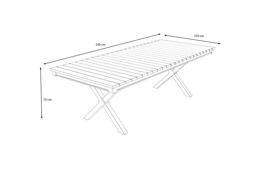 Das markante X-Gestell aus pulverbeschichtetem Aluminium verleiht dem Tisch Stabilität und einen modernen Look. Die widerstandsfähige Beschichtung schützt vor Kratzern, Rost und Witterungseinflüssen – ideal für den ganzjährigen Einsatz im Außenbereich. So bleibt Ihr Esstisch auch nach vielen Sommern ein echter Blickfang. |
