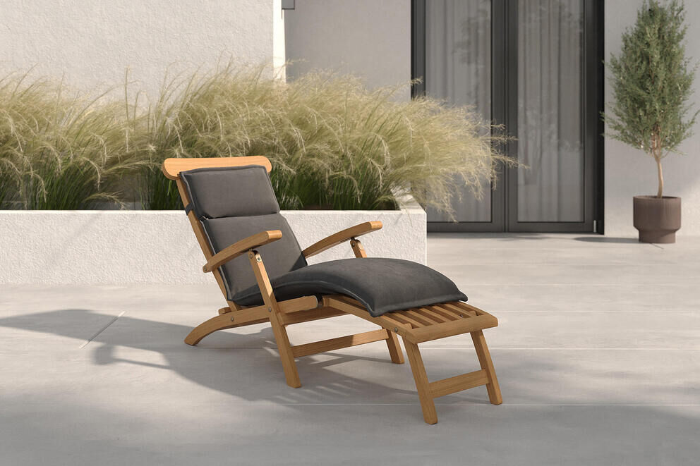 Dank des durchdachten Klappmechanismus lässt sich der Deckchair bei Bedarf ganz einfach zusammenklappen und platzsparend verstauen. Die stabilen Fußkappen aus Kunststoff schützen empfindliche Untergründe wie Holz- oder Steinbeläge und sorgen zusätzlich für einen sicheren Stand. Das Material ist von Natur aus witterungsbeständig, UV-beständig und langlebig – ideal für den dauerhaften Einsatz im Freien.