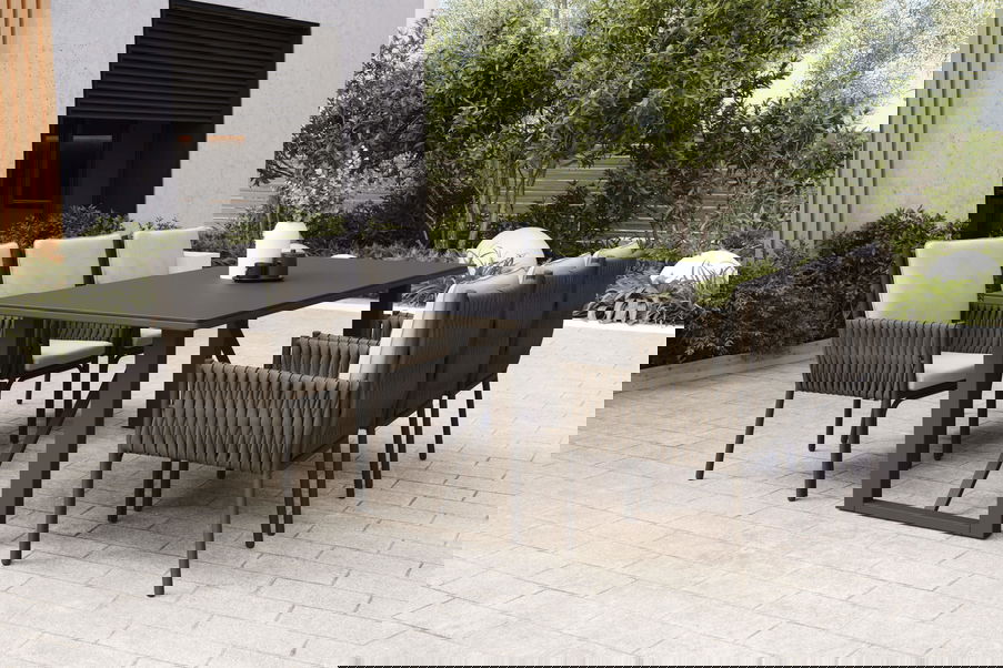 Das innovative und hochmoderne Material Rope sorgt nicht nur für eine ausgefallene Optik, sondern ist auch höchst komfortabel, da sich das Material individuell dem Körper anpasst und so für einen einzigartigen Sitz- und Liegekomfort sorgt. Es handelt sich bei diesem neuen Material um eine Kombination aus einem High-Density Polyethylen (HDPE)-Erstmaterial und einem Mantel aus 100% Polypropylen. Dadurch ist Rope temperaturunempfindlich, farbecht, UV-beständig und wasser- und frostbeständig.